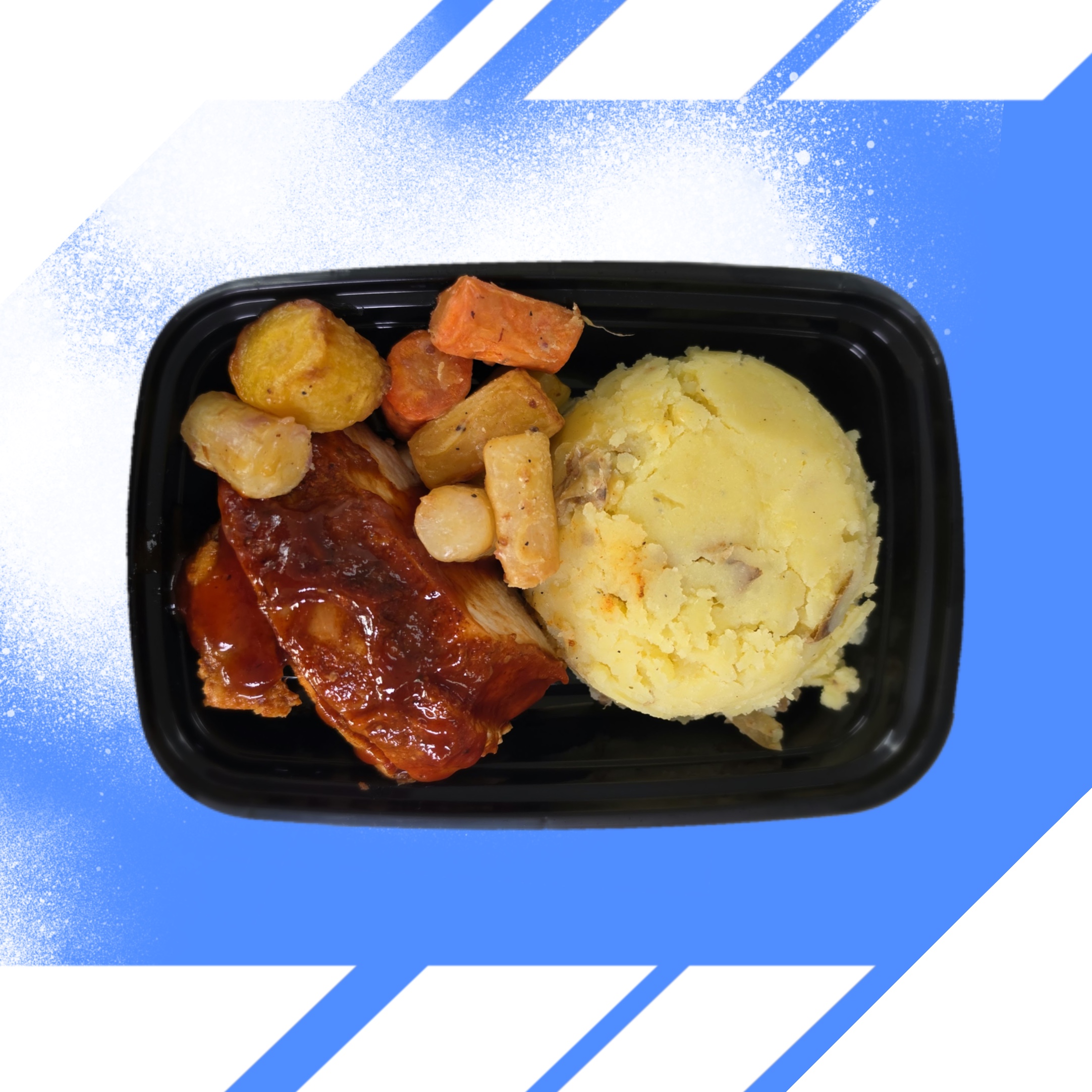 yukon gold potato, chicken baked, carrots, barbecue sauce (high fructose corn syrup, distilled vinegar, tomato paste, modified corn starch, contains less than 2% of salt, pineapple juice concentrate, natural smoke flavor, spice, caramel color, molasses, sodium benzoate (preservative), garlic, mustard flour, corn syrup, sugar, tamarind, natural flavor, celery seed), butter (cream, natural flavor), olive oil, garlic, kosher salt, cayenne pepper, sage, black pepper