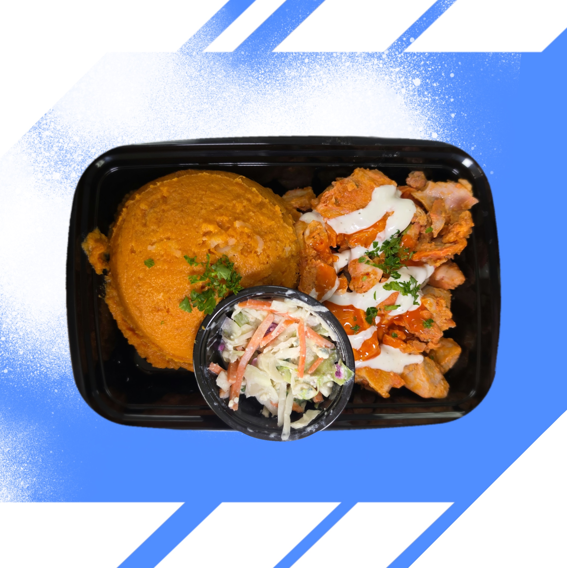sweet potato, chicken, green cabbage, carrots, red cabbage, blue cheese (blue cheese (pasteurized milk, cheese cultures, salt, enzymes), powdered cellulose to prevent caking, natamycin to protect flavor), 2% milk, celery, distilled vinegar, aged cayenne red peppers, salt, water, canola oil, paprika, xanthan gum, sodium benzoate (as a preservative), natural butter type flavor and garlic powder, maple syrup, lemon juice, carrots, butter (cream, natural flavor), green onions, salad dressing, mayonnaise, light, kosher salt, black pepper