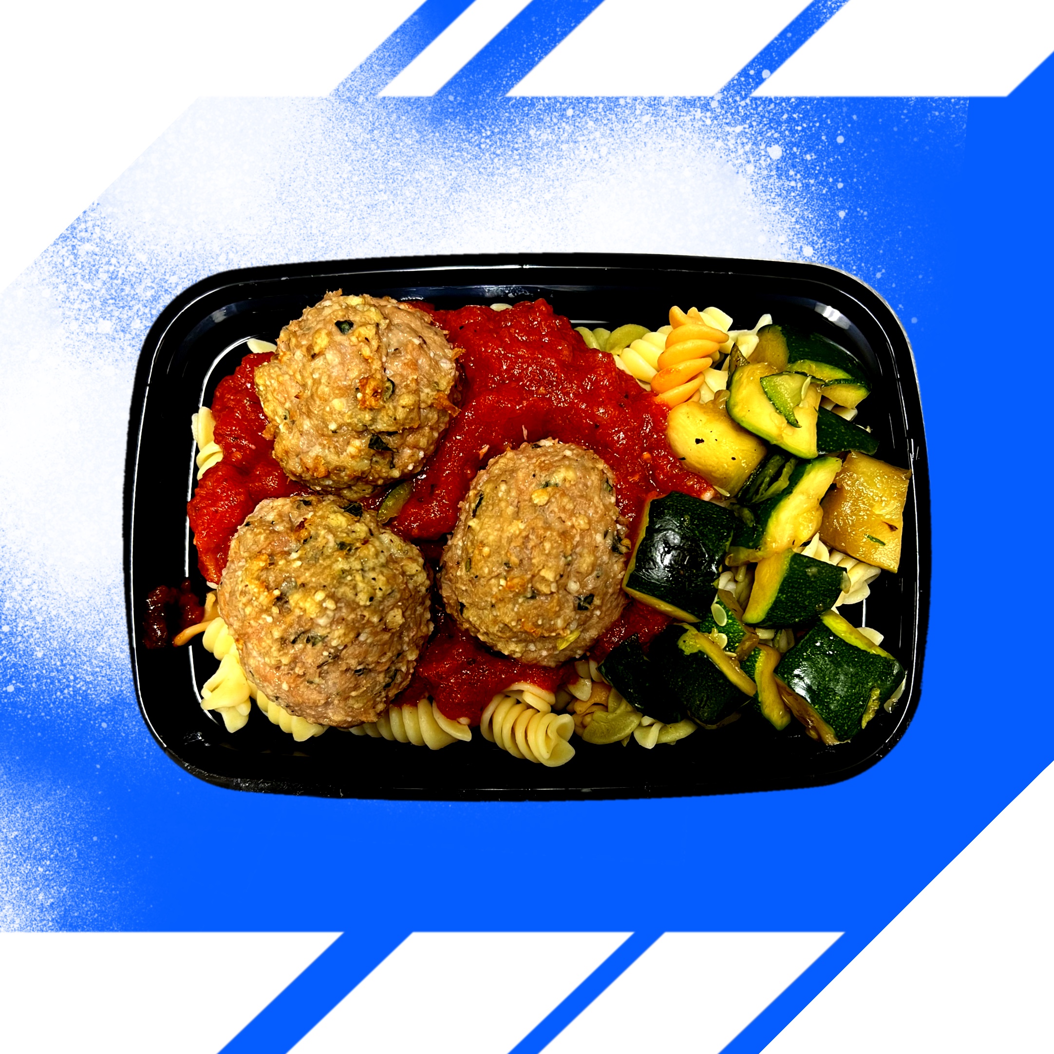 marinara sauce (tomato puree (water, tomato paste), diced tomatoes in tomato juice, canola oil, contains less than 1% of: salt, dehydrated onions, dehydrated garlic, spices, citric acid), ground turkey, zucchini, tri color pasta (semolina (wheat), durum wheat flour, dried spinach, dried tomato. vitamins/minerals: vitamin b3 (niacin), iron (ferrous sulfate), vitamin b1 (thiamine mononitrate), vitamin b2 (riboflavin), folic acid), onion, egg, parmesan (milk, cheese cultures, salt, enzymes), panko crumbs (wheat flour, <2% of sugar, yeast, soybean oil, salt), basil, garlic, kosher salt, oregano, black pepper, red pepper flakes