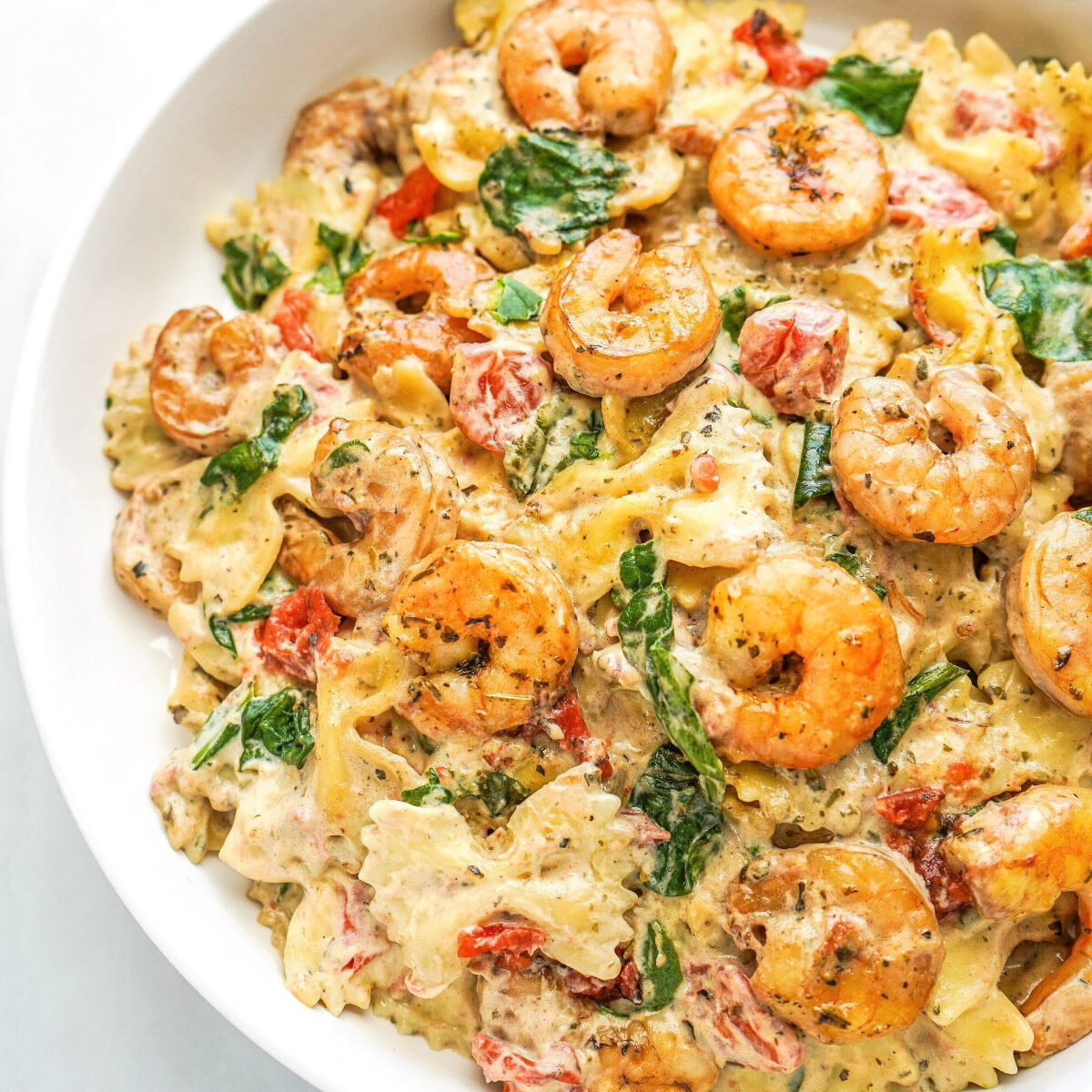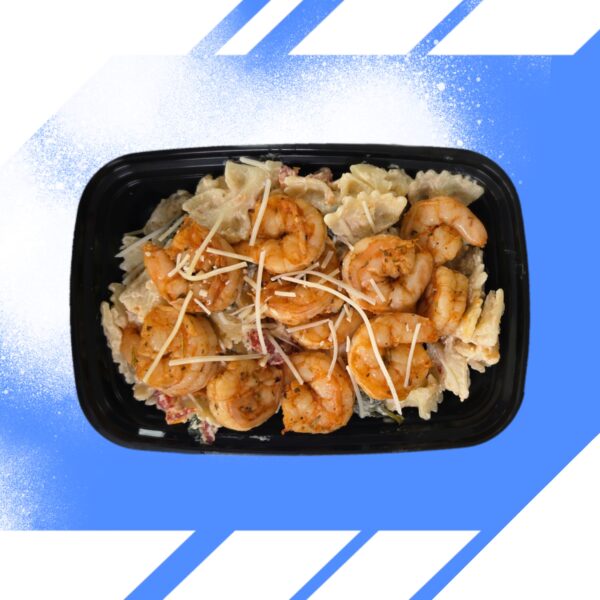 shrimp, half and half (milk, cream), italian classics farfalle, vegetable broth (vegetable broth (prepared from water and concentrated juices of carrot, celery, and onion) contains less than 2% of: salt, high fructose corn syrup, vegetable flavor blend (vegetables[carrots, onions, celery], salt, sugar, potato flour, carrot powder), flavoring, dextrose, autolyzed yeast extract, natural flavoring, monosodium glutamate, disodium inosinate, disodium guanylate, citric acid), sun dried tomatoes, spinach, parmesan (milk, cheese cultures, salt, enzymes), enriched unbleached flour (wheat flour, malted barley flour, niacin, iron, thiamine, riboflavin, folic acid), garlic, butter (cream, natural flavor), lemon juice, basil, italian seasoning (marjoram, thyme, rosemary, savory, sage, oregano, basil)